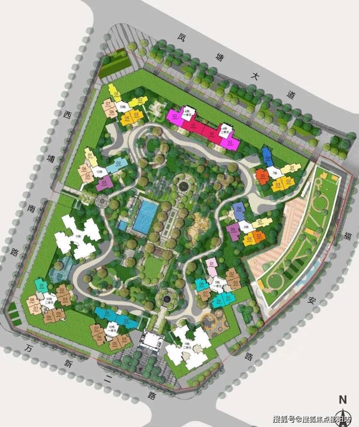 <教育>:配建3所幼儿园,凤塘大道以北的1区、2区、5区组团可以申请深外宝(集团)中心校区和臻善校区,凤塘大道以南的3区、6区、7区组团可以申请深外宝(集团)致美校区。