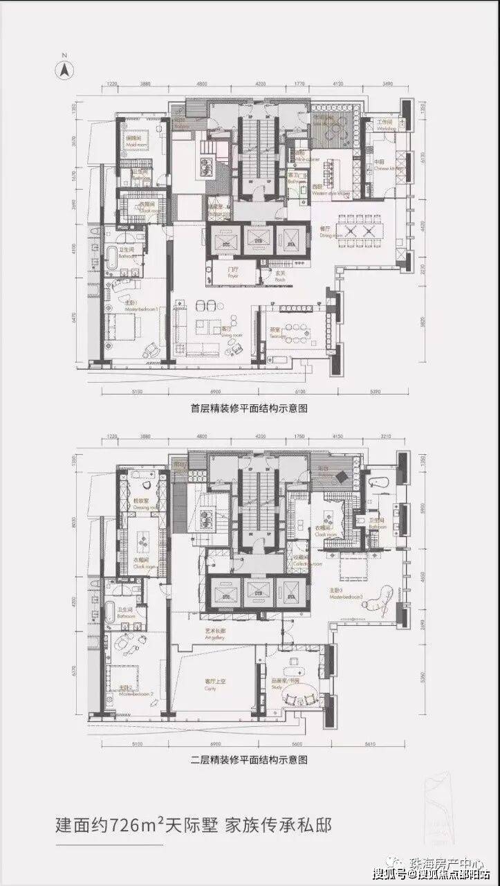 3栋32层顶层复式674㎡定义是台湾邱德光设计打造以会所接待为主的样板间,2栋28层726㎡定义是台湾李玮珉设计打造居家样板间满足2代人生活居住。