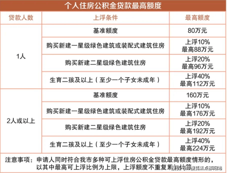 公积金贷款额度也提高了,具体额度看下表,最高可以到224万额度。