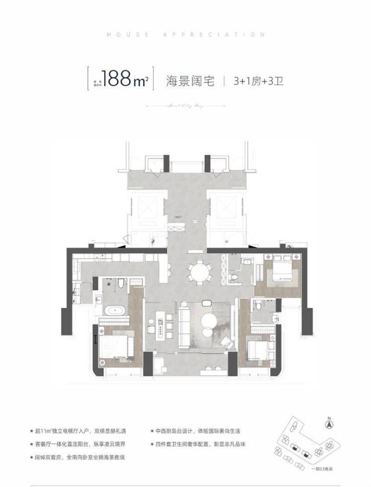 约200m超高层视野下的天际居所,私享珍罕城市山海美景,高端服务与精粹配套,打造环湾顶点之上的滨海都会生活范本。