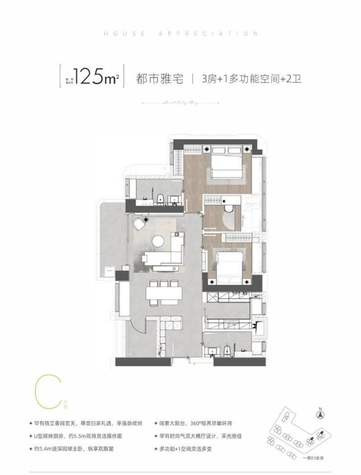 金地环湾城金地环湾城项目户型有:125平米3+1平层户型、少量75平米两房和125平米复式,183-253-270平米大户型,和440平米顶复。户型图如下: