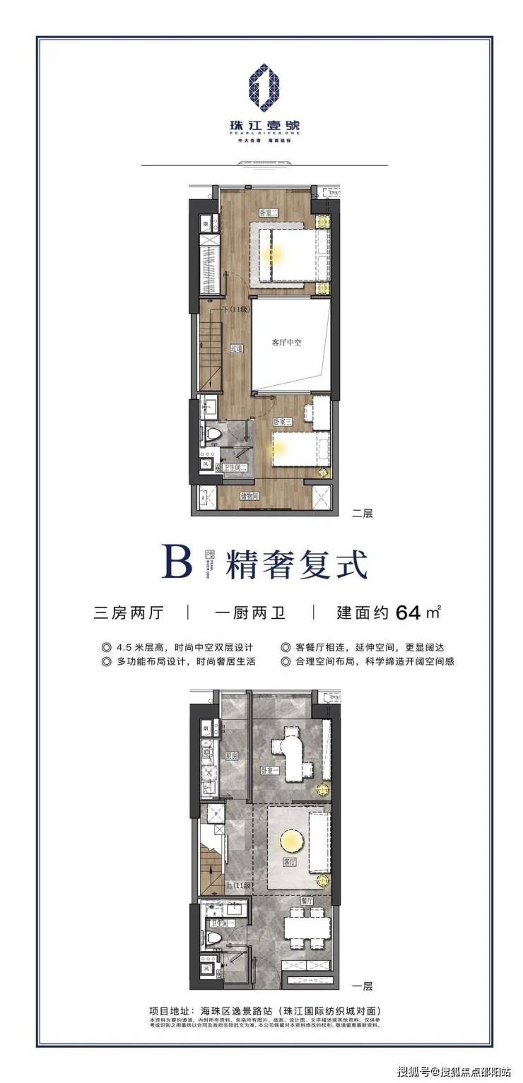 珠江壹號,31万㎡城市地标级综合体,携220m超甲级写字楼落位中大商圈,目前中大板块中唯一地铁正上的超甲级写字楼。集超甲级写字楼、墅级奢居复式、约10万㎡商业旗舰于一体,享受全配套优质生活圈,满足居住、办公、购物休闲等一站式需求。