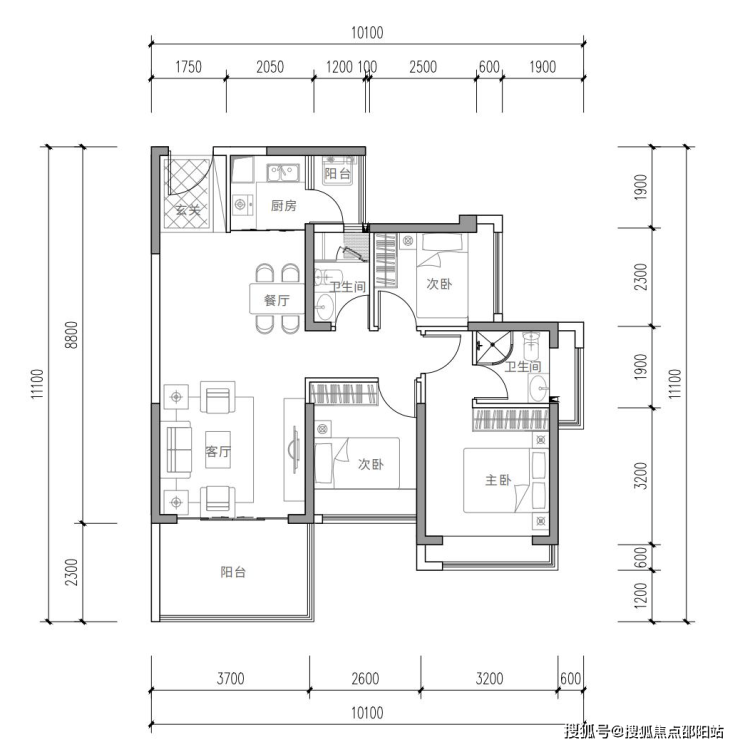 舒适三房,方正实用,两卫设计