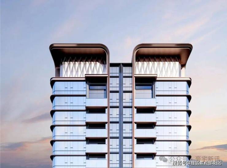 建筑外立面大胆采用弧线艺术勾绘王座式塔冠,以及大面积通透LOW-E玻璃幕墙,辅以香槟金、内敛灰、雅致咖的品质铝板,淬炼出恒久典雅的观感。
