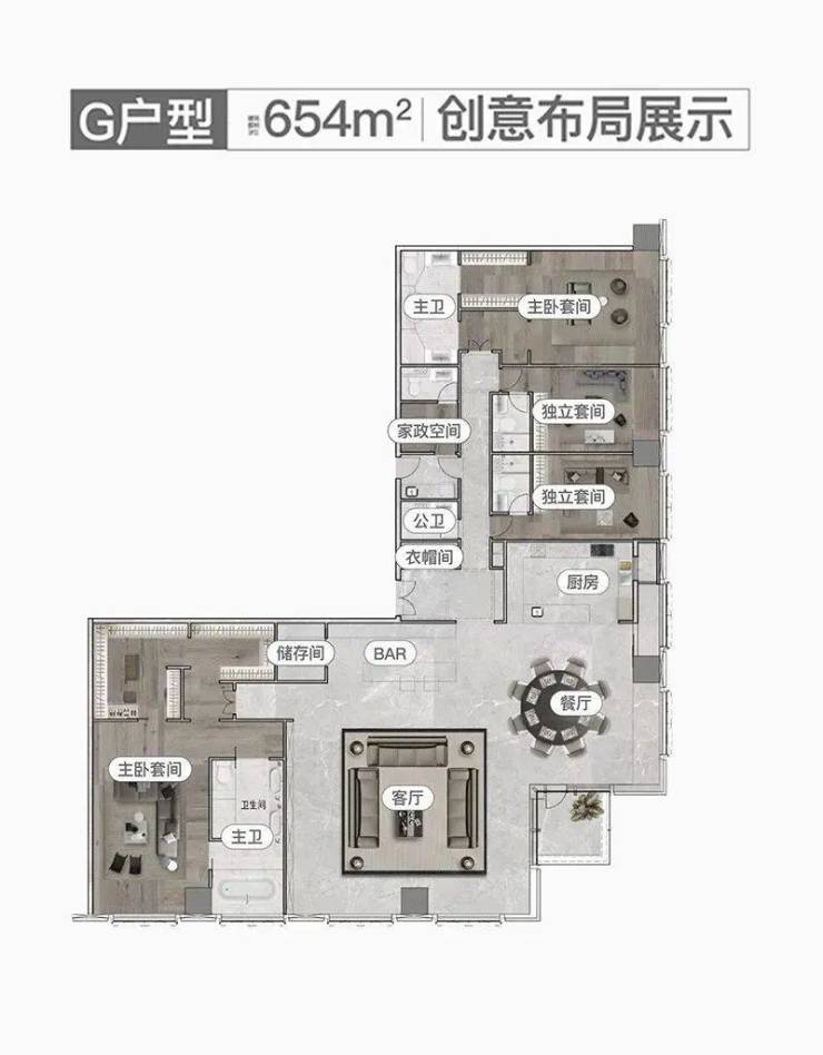作为金融城核心区地标综合体,项目规划 62 栋 9-28 层住宅,仅打造 96 席建面约 355-654㎡一线江景大平层,定位为 “世界湾区江岸私属会客厅”,主要面向高净值人群。