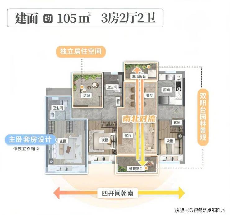 ✔客厅、次卧、主卧三开间朝南,主卧套房设计