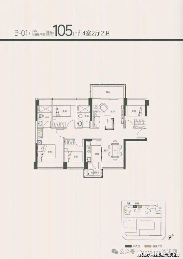 建面约105㎡4房2厅2卫是楼王单位,仅58套可售单位,能满足大部分家庭一步到位的需求。