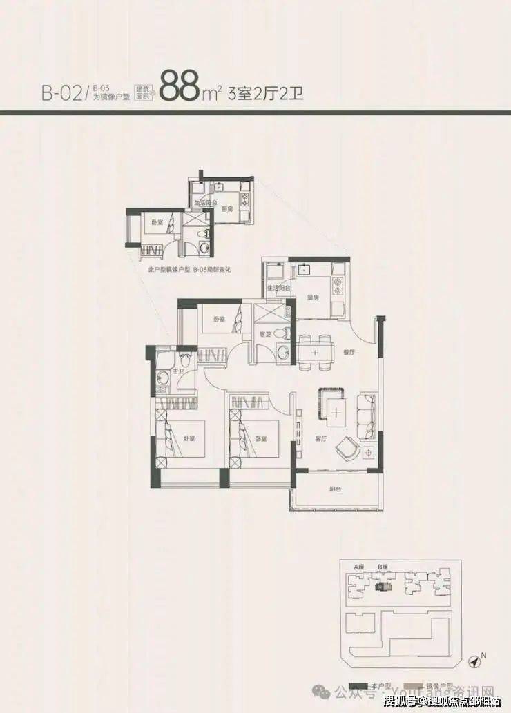 约88㎡竖厅传统三房二卫(户型02.03) 58套