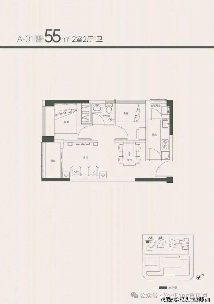 项目1A和1B座为商品房住宅(55㎡-105㎡)348套。在产品设计上,同样的房型配比跟市场上同类型的面积段少5㎡左右,基本上是对首置群体的门槛降低