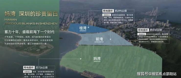 根据规划,妈湾有2.9平方公里的土地由招商局集团和前海管理局合资成立的公司统一开发运营,最新定位是前海深港国际服务城,与桂湾深港国际金融城共同组成了前海双核,是前海扩区后的首要、重点推进项目。