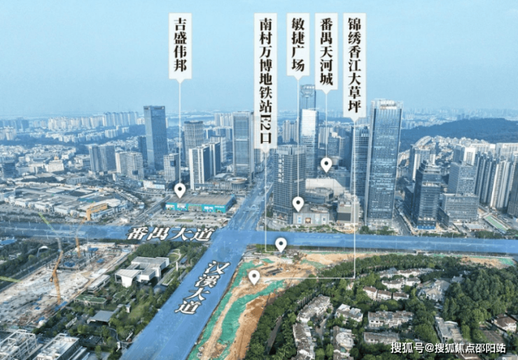 香江 1 号位于番禺大道北与朝阳东路交汇处,属于番禺大石板块,直线距离珠江新城约 10 公里,开车走新光快速,非高峰期 25 分钟左右能到天河。对于在天河、海珠上班的人来说,这个位置算比较折中,比住南沙、增城通勤时间更可控。周边有长隆旅游度假区、万博商务区等,生活配套和就业机会都比较丰富。