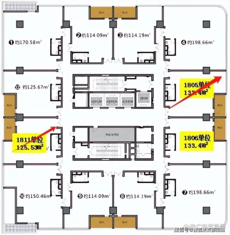 物业管理由具有国家一级资质的方大物业担纲,18元/㎡·月的基础费用叠加2.4元/㎡·月的空调维护费,确保24小时专业服务。18层标准层平面图展现出"回"字形动线布局,核心筒与办公区黄金分割,实现空间利用最大化。整体采用"公共区域精装+单元毛坯"的交付标准,既保证公共空间的品质呈现,又为企业预留充分的个性化改造空间。