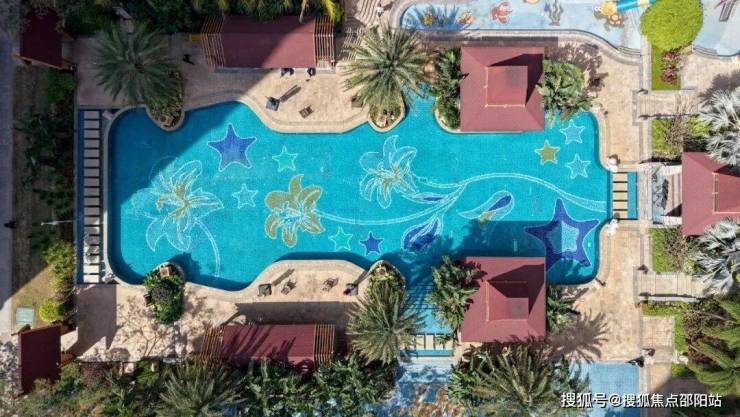 以山为背景,依台地起伏,将温泉、泳池、东南亚风情连廊贯穿其中,营造高低错落,花木点缀,水系与绿意共鸣的景观。
