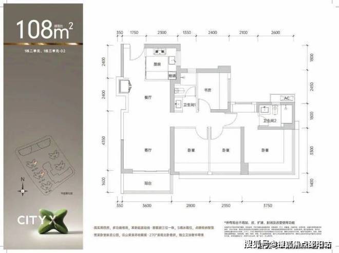 建面约108㎡四房两卫:为改善型家庭量身打造。全明设计确保了每一寸空间的通透与明亮,约3.6米开间的大尺度阳台,不仅延展了生活空间,更将室外的景观与活力引入家中,是家庭品质升级的理想选择。