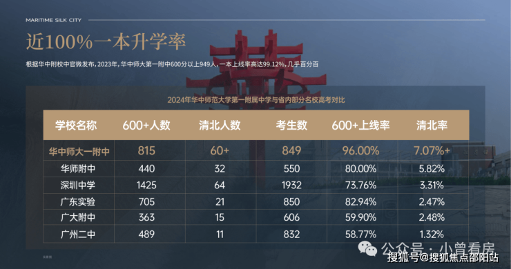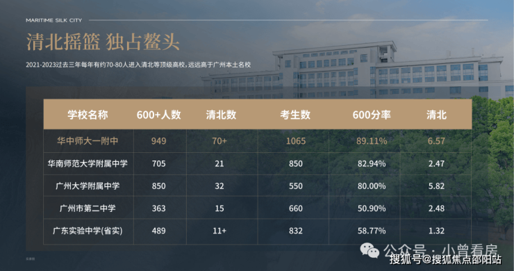 1、引入华中师大教育集团办学,学校连续六年排名全国第一,清北摇篮 (广州第一的华师附仅排名第十五),近100%一本升学率