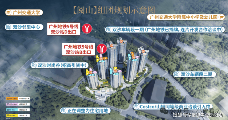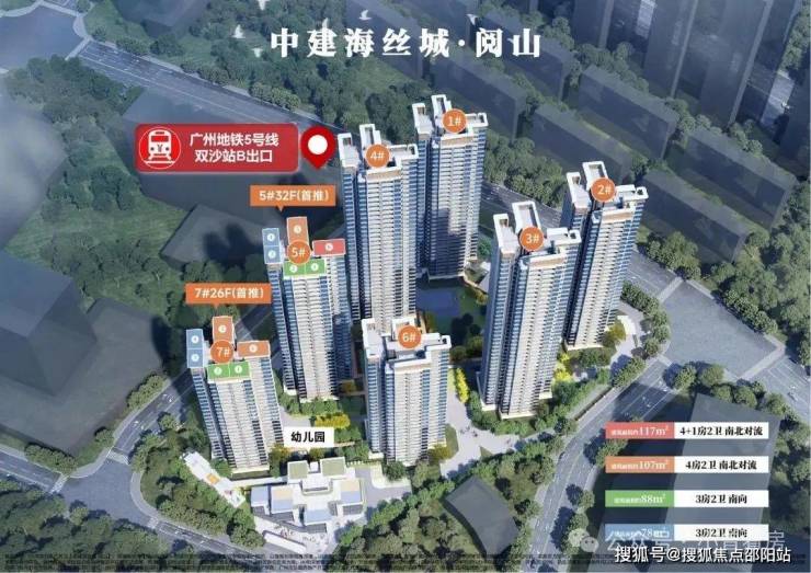 在售阅山组团出家门步行约40步即达地铁5号线双沙站B口, 一线可达珠江新城贯穿广州三大主轴。