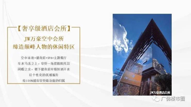 开发公司:嘉裕集团嘉裕集团深耕珠江新城超20年,曾打造维家思广场、汇峰苑、嘉裕·君玥公馆、嘉裕公馆等项目品牌,秉承高端酒店地产的理念打造世界藏品,续写嘉裕传奇。项目规划:顶级酒店+酒店行政公馆+甲级商务+高端商业28-46层:JW万豪酒店16-27层:嘉裕中心·J公馆15层:高端私人酒店会所1-14层:甲级商务写字楼、精奢商业、高端影视会所
