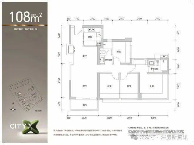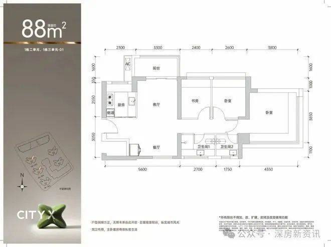 88平3房2卫:折后336-359万