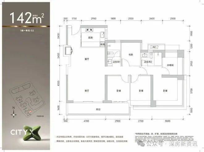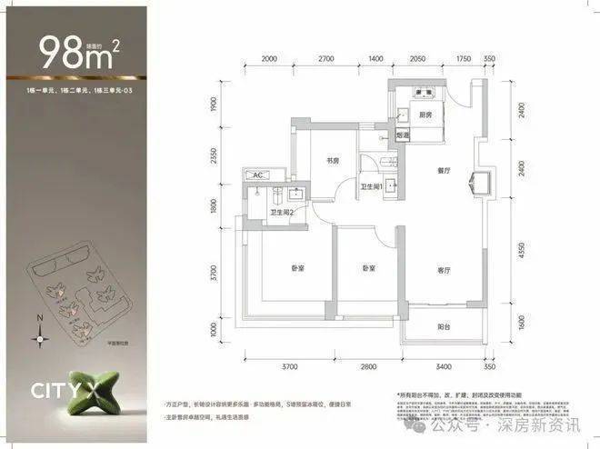 98㎡的3房2厅2卫,1栋1/2/3单元03.05户型,设计的是经典竖厅格局,客厅3.4米开间,三开间朝南,3个卧室分别做到了主卧14.3㎡/次卧10.36㎡/次卧6.75㎡(包含墙体飘窗),得房率约90%(包含赠送),东南或西南朝向。✨✨鸿荣源观城售楼处电话:400-859-7606【售楼处已认证】✨✽✽✽✽