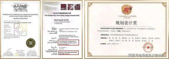 国内外选评载誉无数,区域国际铸就战略高地。问鼎国际ILFA顶级荣誉以及荣获2022年大湾区城市设计大奖、广东省风景园林与生态景观协会科学技术奖规划设计(规划类)奖项。