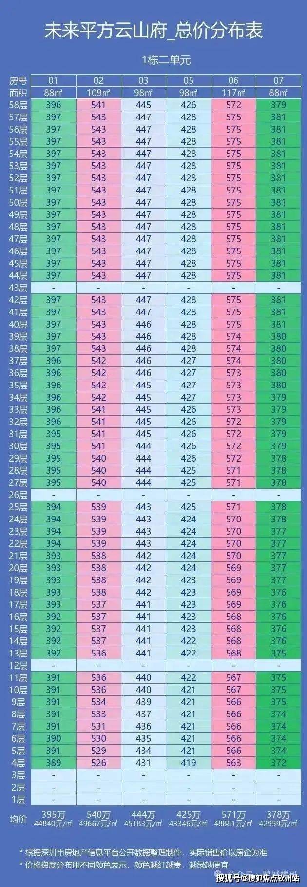 01户型:88平(南北通透),单价39900-40800,总价351-359万。