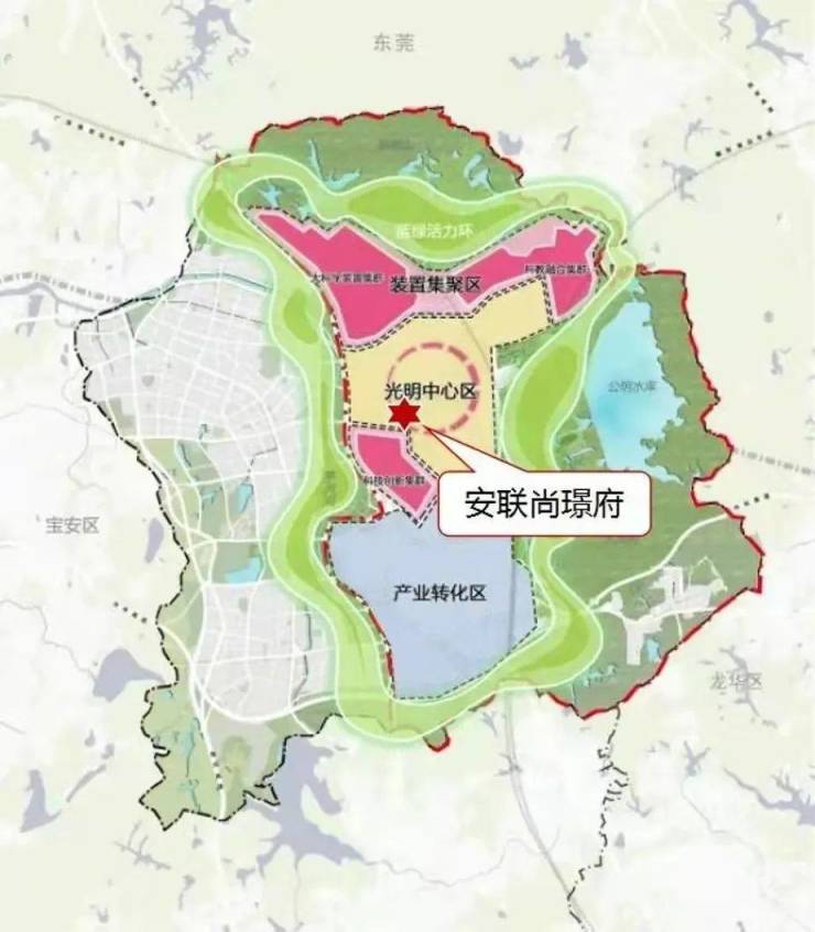 光明科学城整体布局“一心两区”,未来三年光明计划新拓产业用地399万㎡,汇聚新兴产业集群,打造深圳北“硅谷”基地,未来高智人口聚集地,项目所在的科学城中心区将以科学家为建设核芯,未来将承载超百万科学城人才生活