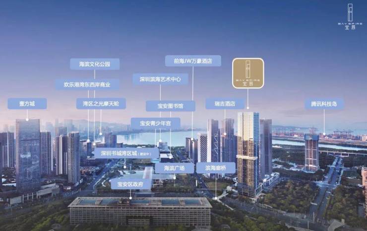 位置:位于宝安区政府西南侧,毗邻滨海廊桥、欢乐港湾摩天轮(湾区之光)及深圳滨海艺术中心(湾区之声)。
