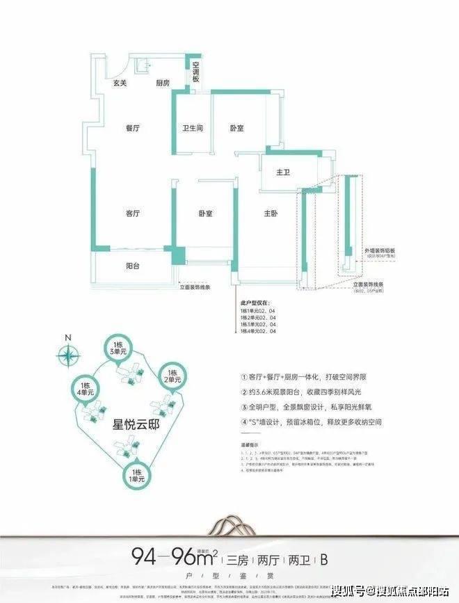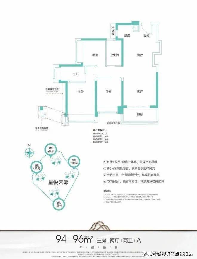 【六维社区】主力建筑面积约95-124㎡三至四房,精工匠造悦居体系