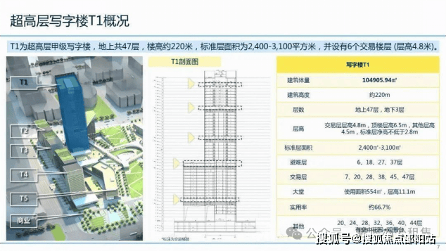 T3栋楼高达83米,共13层,4-13层为办公区域,总面积为12449.09平方米;