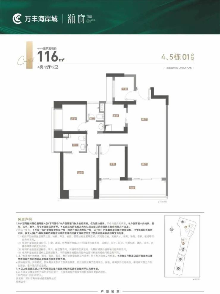 万丰海岸城瀚府二期,总占地面积约2.06万㎡,总建筑面积约18.4万㎡,计容建筑面积约12.9万㎡,容积率6,绿化率40%,共由4栋52-53层住宅组成,其中3-4-5栋商品房52层,6栋商品房53层,规划1所12班幼儿园。