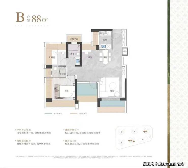 即将首发入市的是一期3栋、5栋的产品,大约368套,建面79㎡3房2厅2卫、约89㎡3房2厅2卫、约99㎡4房2厅2卫、约119㎡4房2厅2卫,共四种户型。