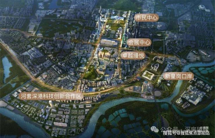 卓越缦悦,作为皇岗村旧改首期项目,位于深圳福田区福民路与皇岗二街交汇处西北角,占据深圳中轴线南北双核交汇处,北承福田CBD金融中心,南接河套深港科技创新合作区(深圳硅谷2.0),坐享深港融合带来的产业、人才和政策红利。项目位于皇岗村旧改一期,该旧改总建面高达201万㎡,分五期开发,其中一、三期南区以居住为主,二、三期北区以商业、办公及配套为主 。作为福田区"会展南广场"规划的重要组成部分,项目将深圳中轴线延伸至皇岗,成为连接行政文化中心与河套科创区的关键节点。
