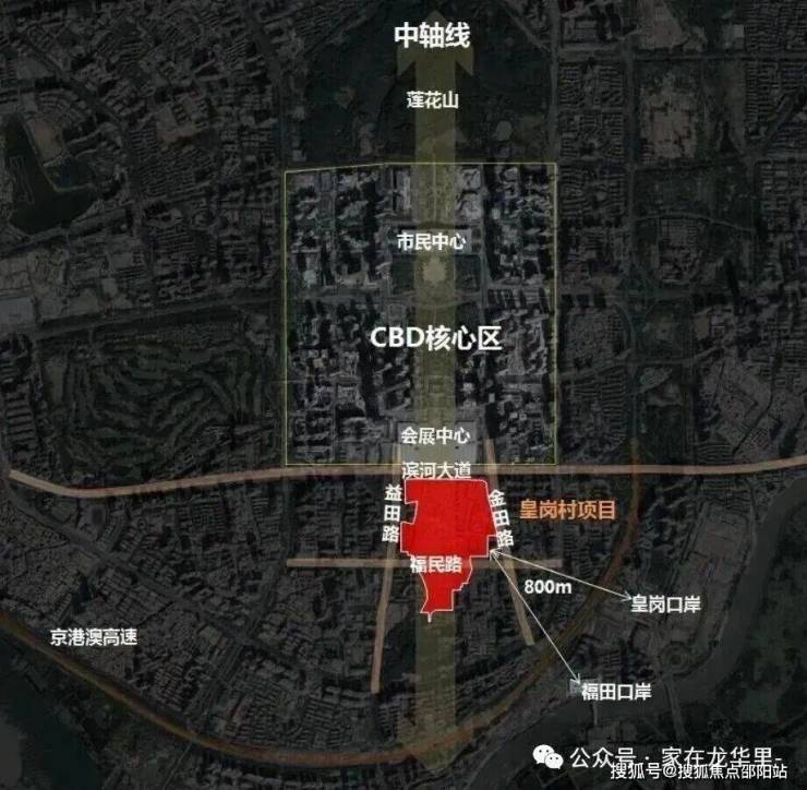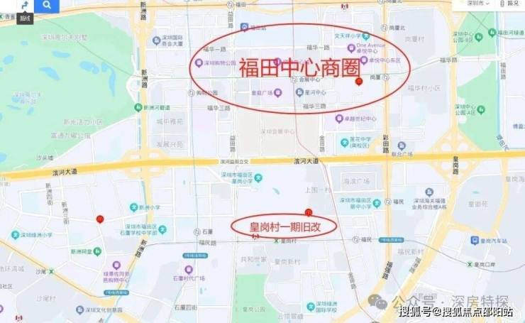 皇岗村改造项目,位于福田福民路与皇岗二街交汇处西北角,紧邻深圳地铁7号线皇岗村站,地处深圳中心的核心腹地。