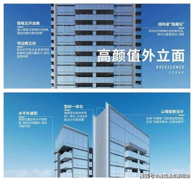 以写字楼和高级住宅美学工艺,锻造铝板幕墙+LOW-E玻璃外立面,超纤细边框设计,展现极简前沿风格。
