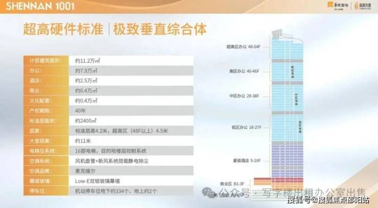 【写字楼层高】:标准层高4.2米,超高区(48F以上)4.5米