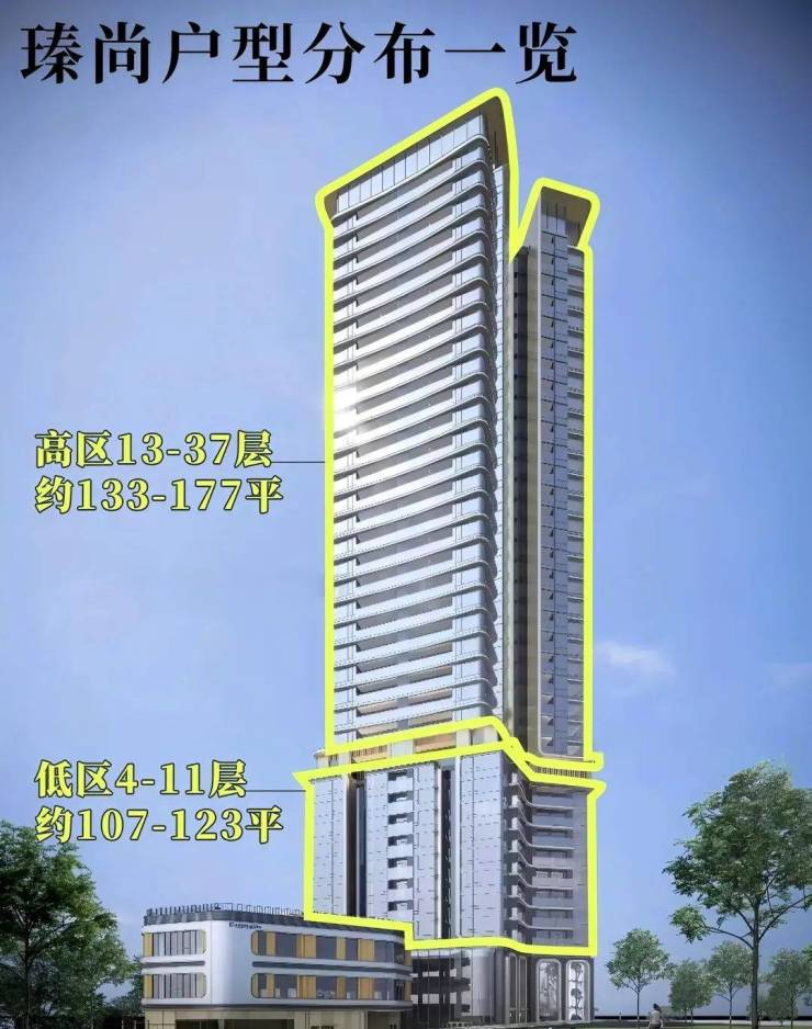 13~37层高区住宅:专梯专户,面积133-177㎡四房