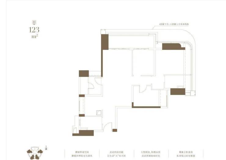 4~11层低区住宅:两梯八户,面积107-123㎡三至四房