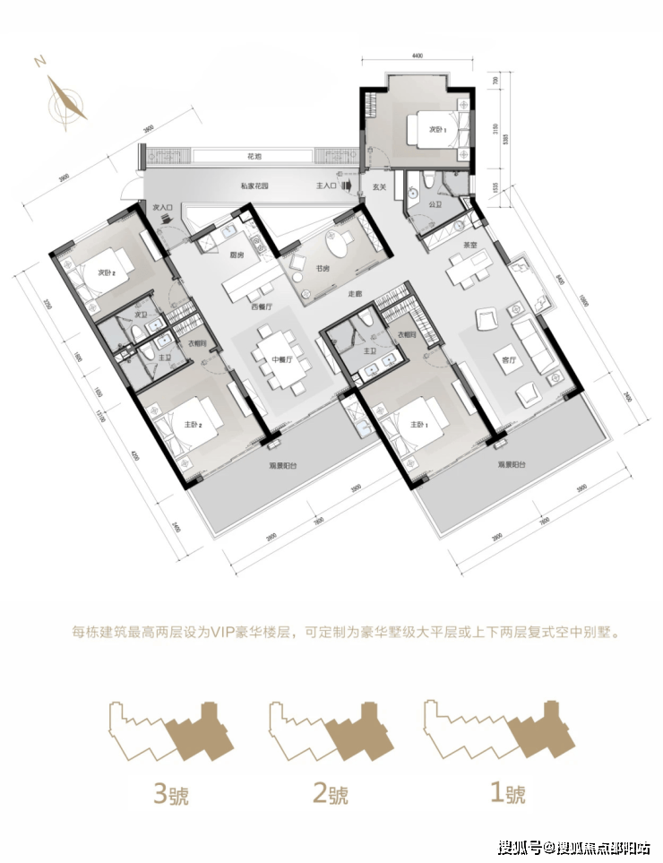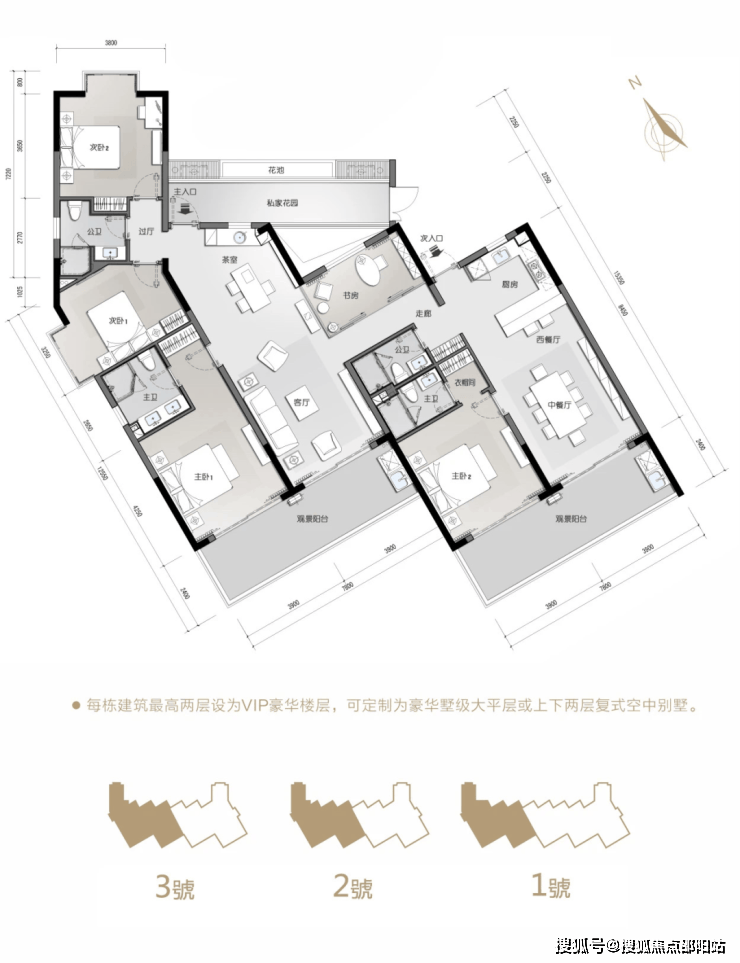 低密纯板揽山瞰海B+C户型:237㎡5房4厅4卫