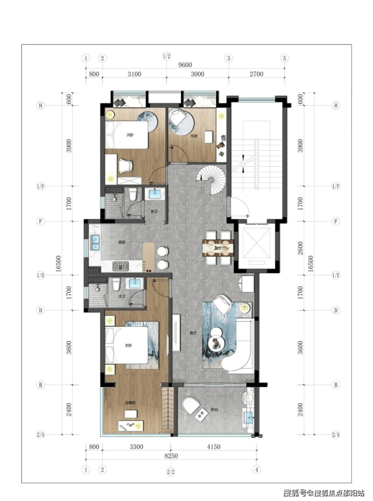上叠:建筑面积约122㎡,赠送阁楼44平米,露台20平米,四房两厅三卫。
