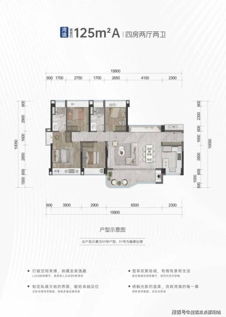 ◎户型面积:约125㎡-143㎡四房,及少量约95㎡三房