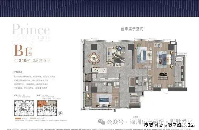 全户型纵享环幕视野。项目打造主力建面约215-415㎡纯粹品质公寓共191席,顶层为建面约1270㎡公寓产品。