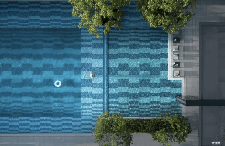 花园泳池:成人、儿童分池玩乐,安心释放玩水天性(成人泳池面积约400㎡,泳道长约30m,儿童泳池面积约120㎡)