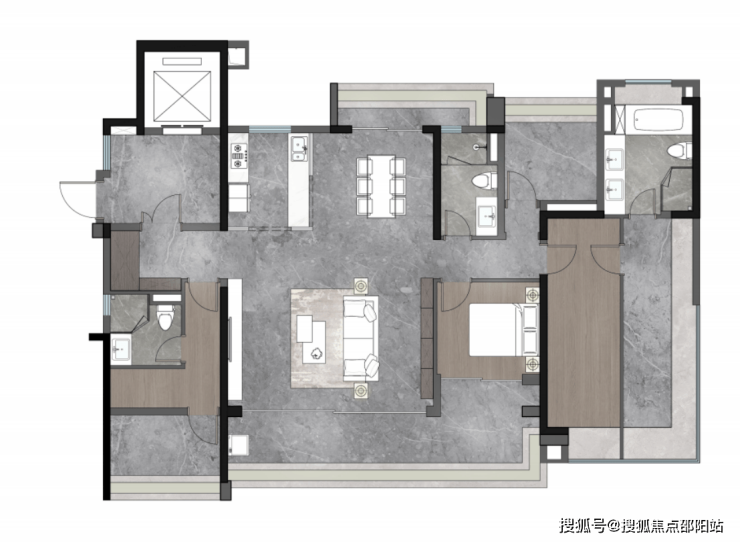 「港式户型」对标香港豪宅设计手法,空间布局注重业主自我及家人居住舒适性。