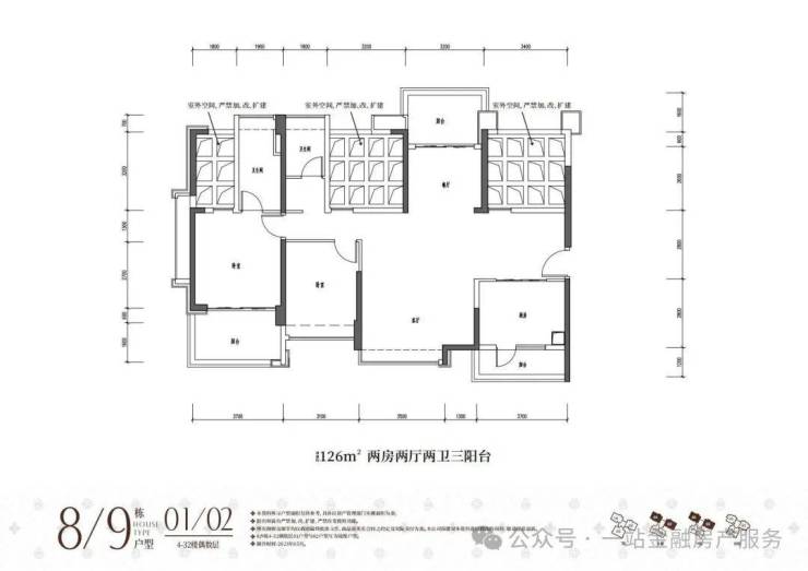 ①高阔奢享:建面约86-176㎡墅境宽宅,改善型大四房,全南向户型天然舒适;两梯三户低梯户比,多阳台露台设计,悦享阔绰居住空间;方正户型结构搭载更多半开放设计,高阔空间实用率与灵活性大幅提升。