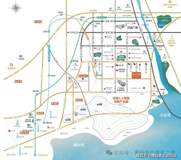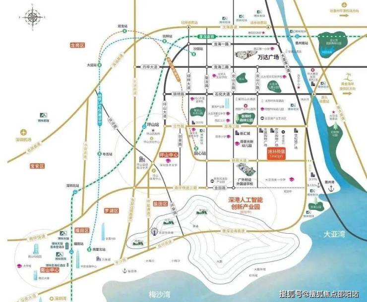 交通配套:项目距离大亚湾主干道龙海三路约300米,龙海三路往西5公里就是深圳坪山地界,项目自驾上深圳南坪快速约7公里,深圳外环高速约7公里。