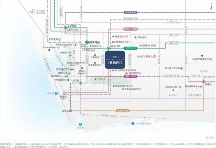 前海时代三期位于前海桂湾片区南侧,临近滨海大道和桂湾河,在整个前海自贸区内算是住宅的C位,正南是水廊道公园,东南望南山,西南看城市海景。