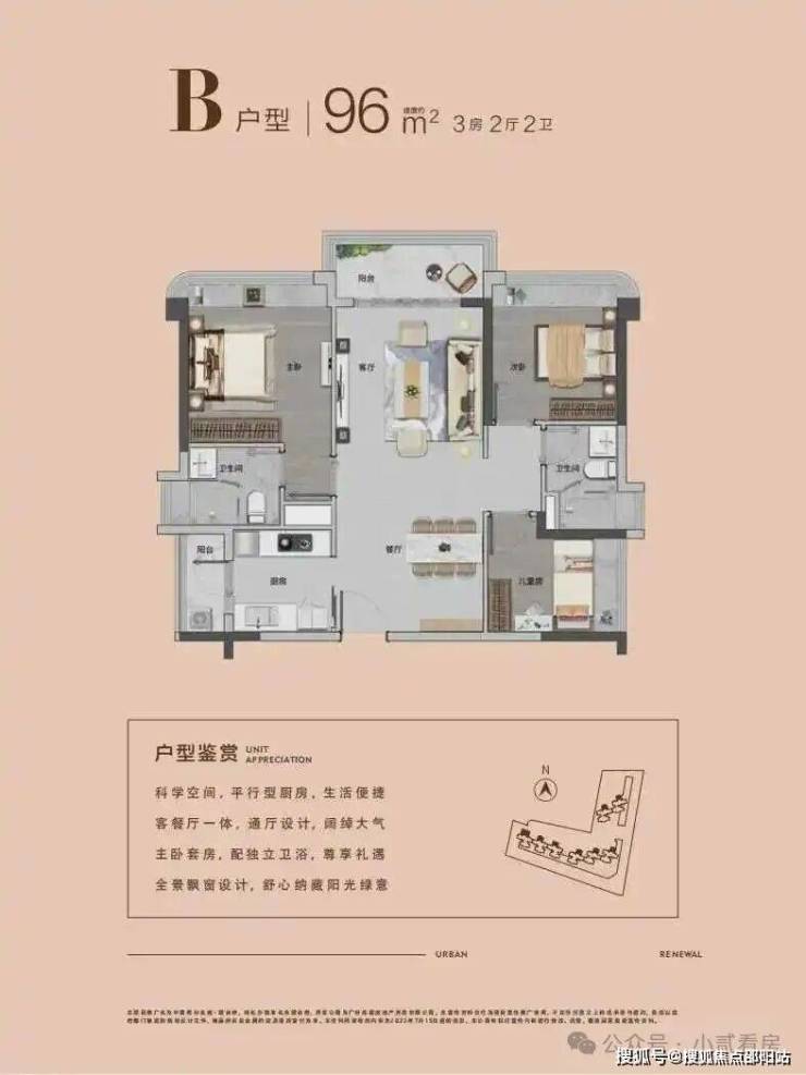 01 /02户型99方,03户型南向97方,04户型96方,05 户型87方在售【7栋】3梯5户,在售户型如下:
