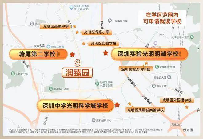 深圳中学光明科学城学校,深圳四大名校,办学规模为84个教学班润宏城·润臻园售楼处电话☎:400-150-5057。2023年9月建成正式投入使用。深圳实验光明明湖学校(暂定名)建设中,深圳四大名校,办学规模为54个教学班。