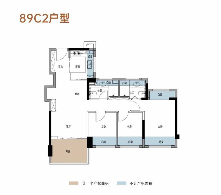 给空间以从容:约89-108㎡ 三至四房新规户型,高赠送率+高使用率