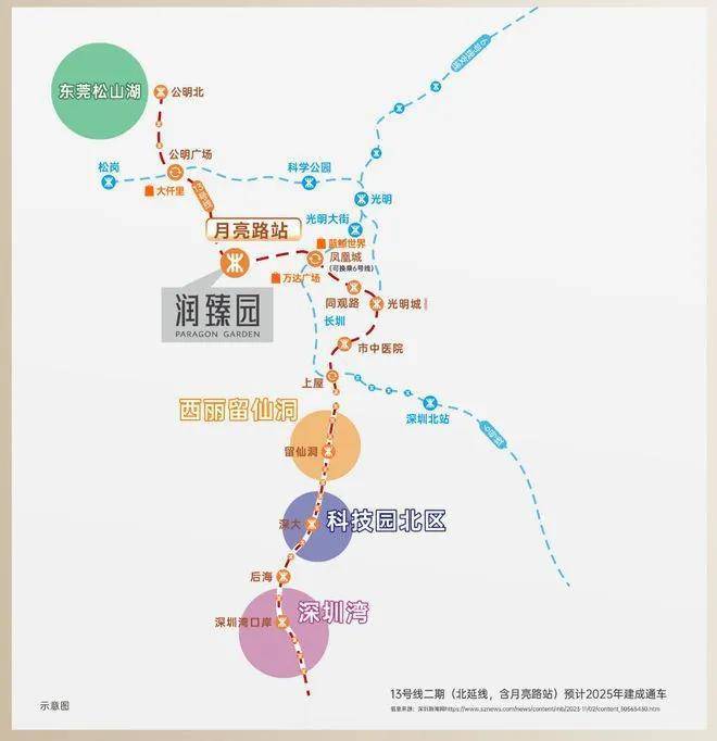 片区更新单元有轨道快线13号线(在建)穿过,是13号线(在建)月亮路站的TOD大城。从月亮路站出发,1站即达凤凰城站,在此处换乘6号线,润宏城·润臻园售楼处电话☎:400-150-5057可便捷通达福田中心;3站即到轨道枢纽光明城站,搭乘高铁,可快速直达深圳北、福田。